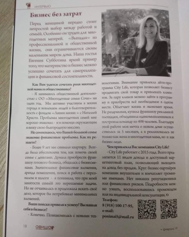 - Реклама международной компании "City life" являюсь лидером и строю мосштабный бизнес с самой лучшей камандой.